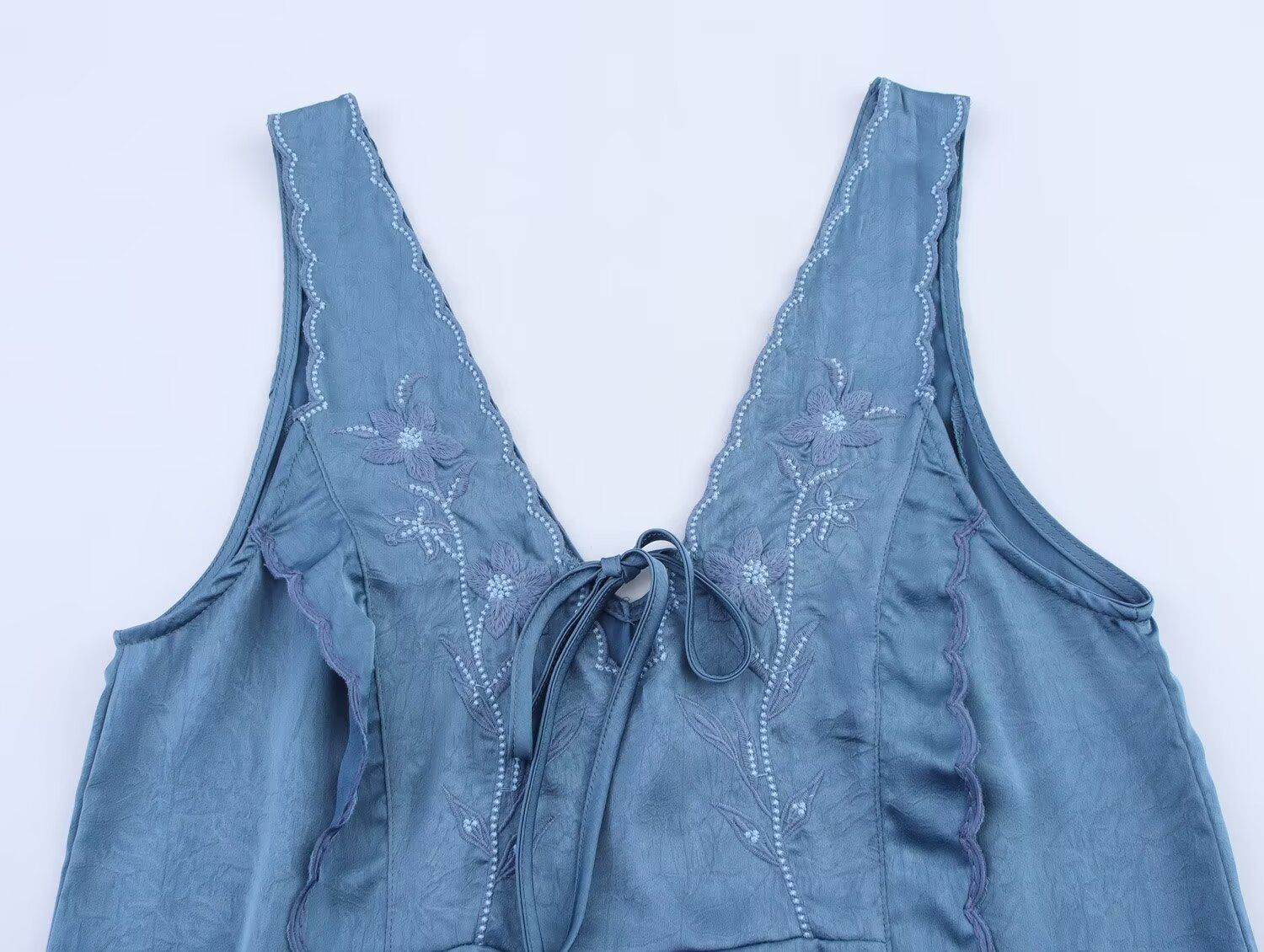 Women's new fashion sleeveless double V-neck floral embroidery mini dress