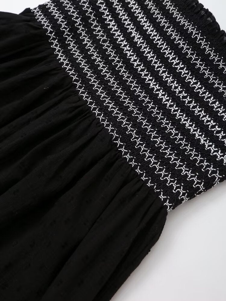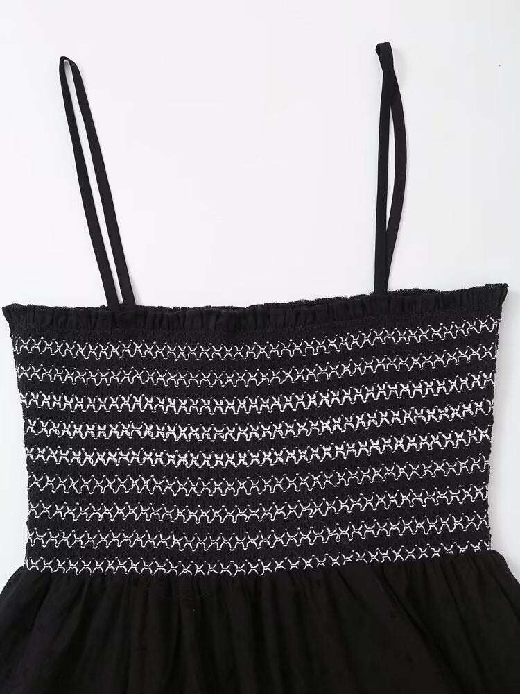 Women's new fashion sleeveless pleated embroidered suspender MIDI dress