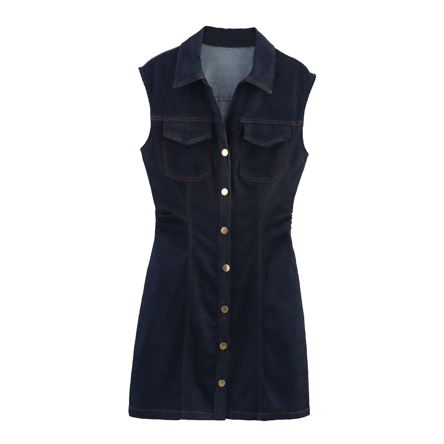 Women's new fashion sleeveless shirt style slim denim mini dress