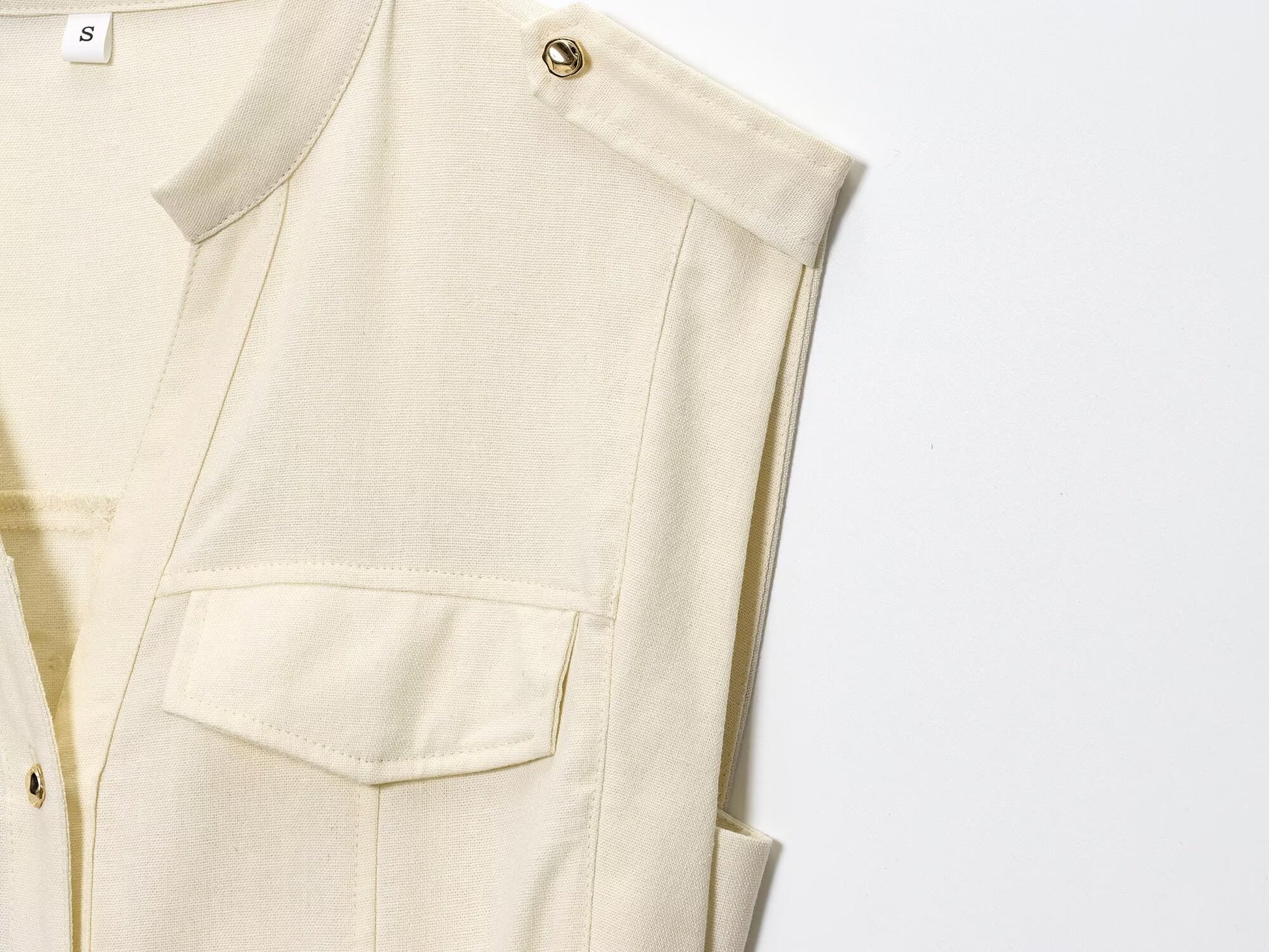 Women's New Fashion Sleeveless Single breasted Linen Blended Midi Dress