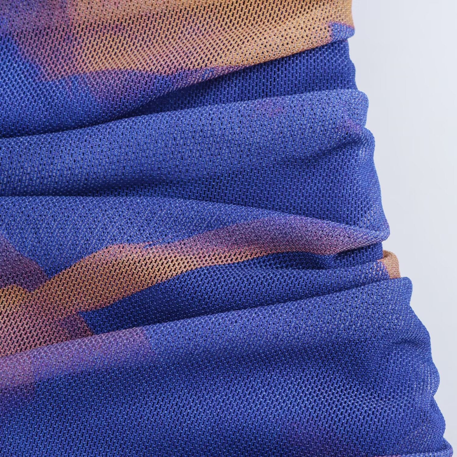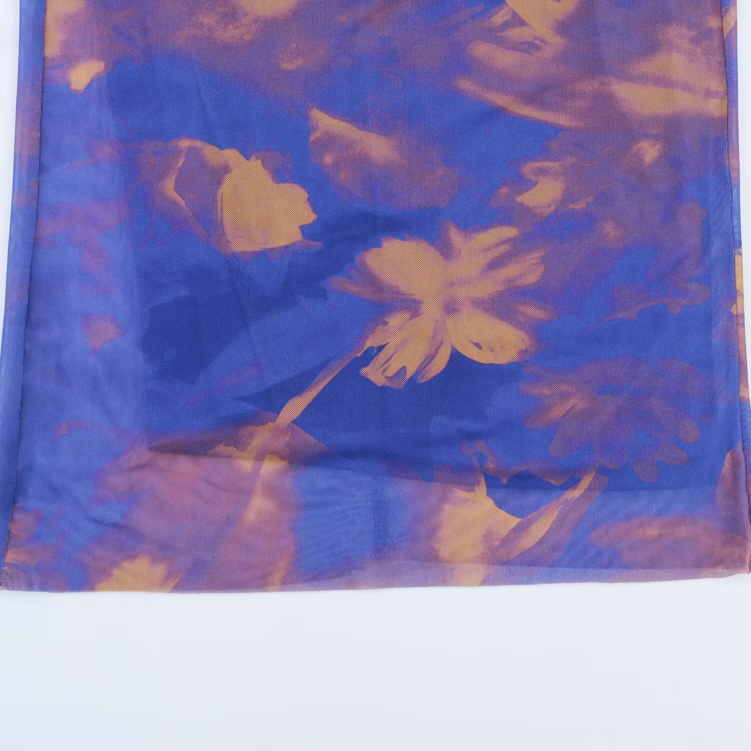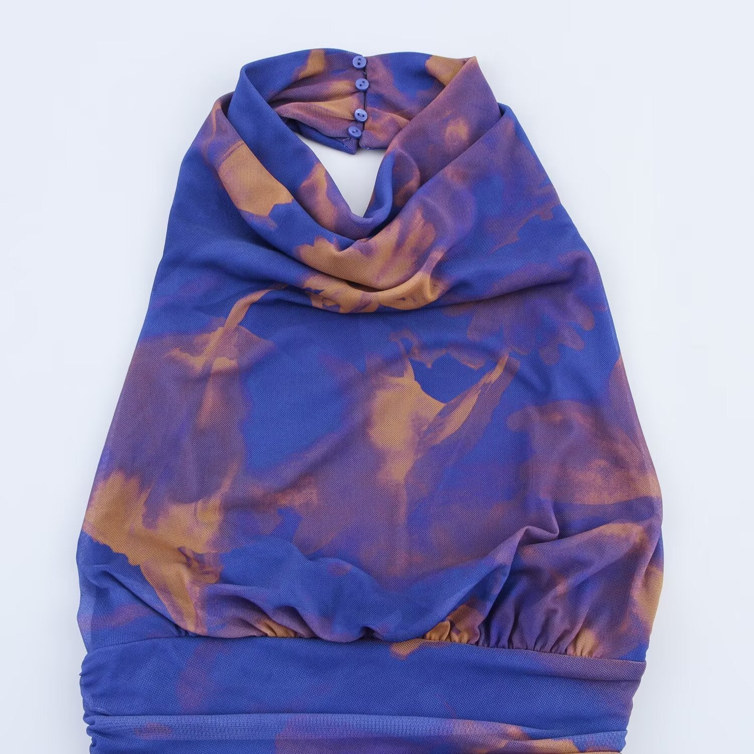 Women's new fashion sleeveless tulle printed pleated Midi dress