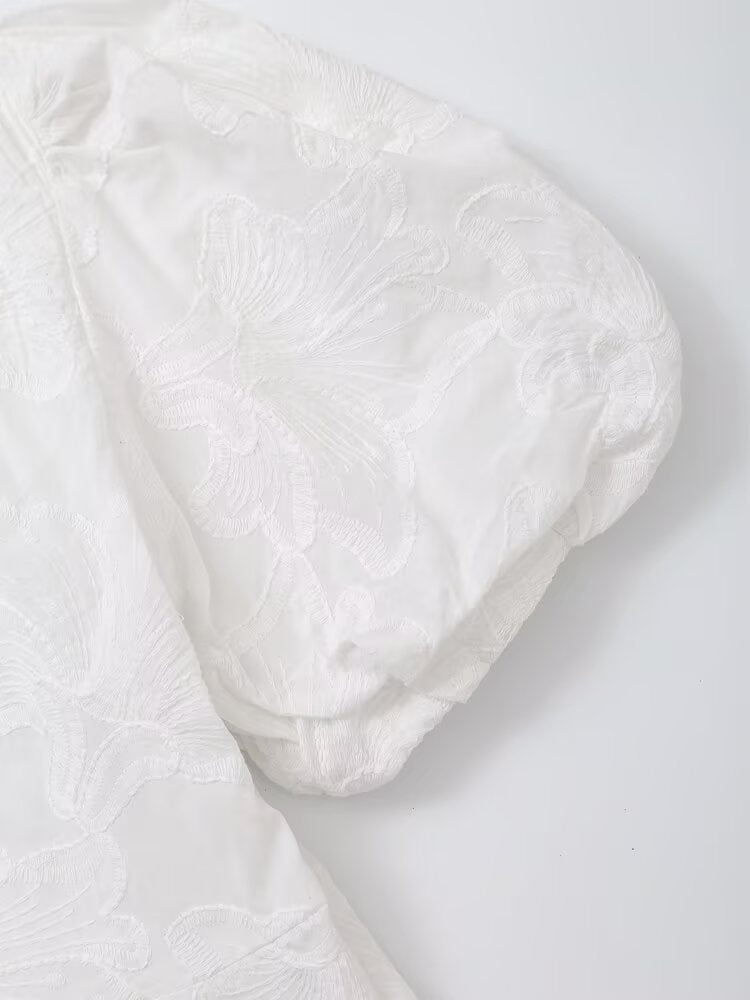Women's new fashion slim short sleeved V-neck embroidered fluffy mini dress