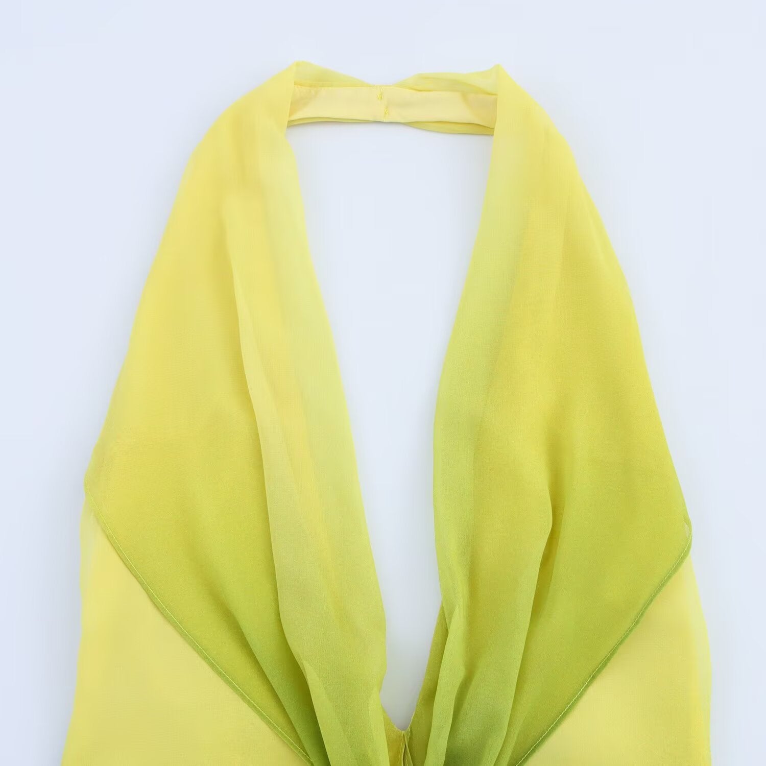 Women's new fashion tie Knot decoration chiffon printed MIDI dress