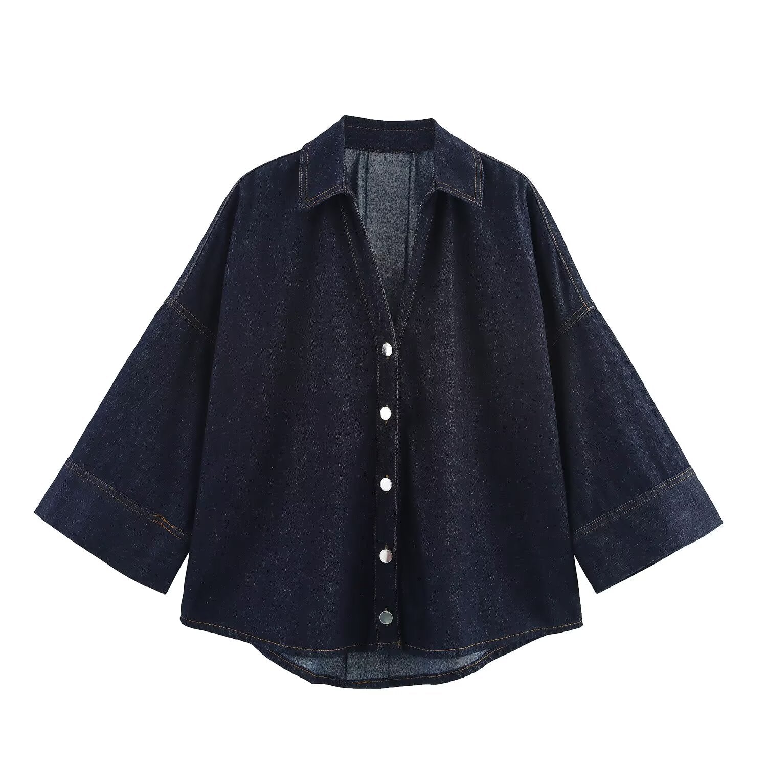 Women's new fashion wide sleeved single breasted denim shirt+Jeans suit