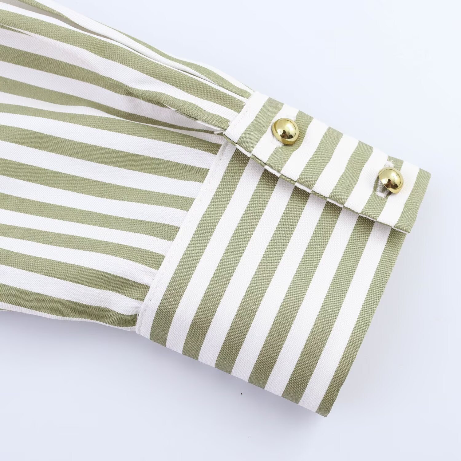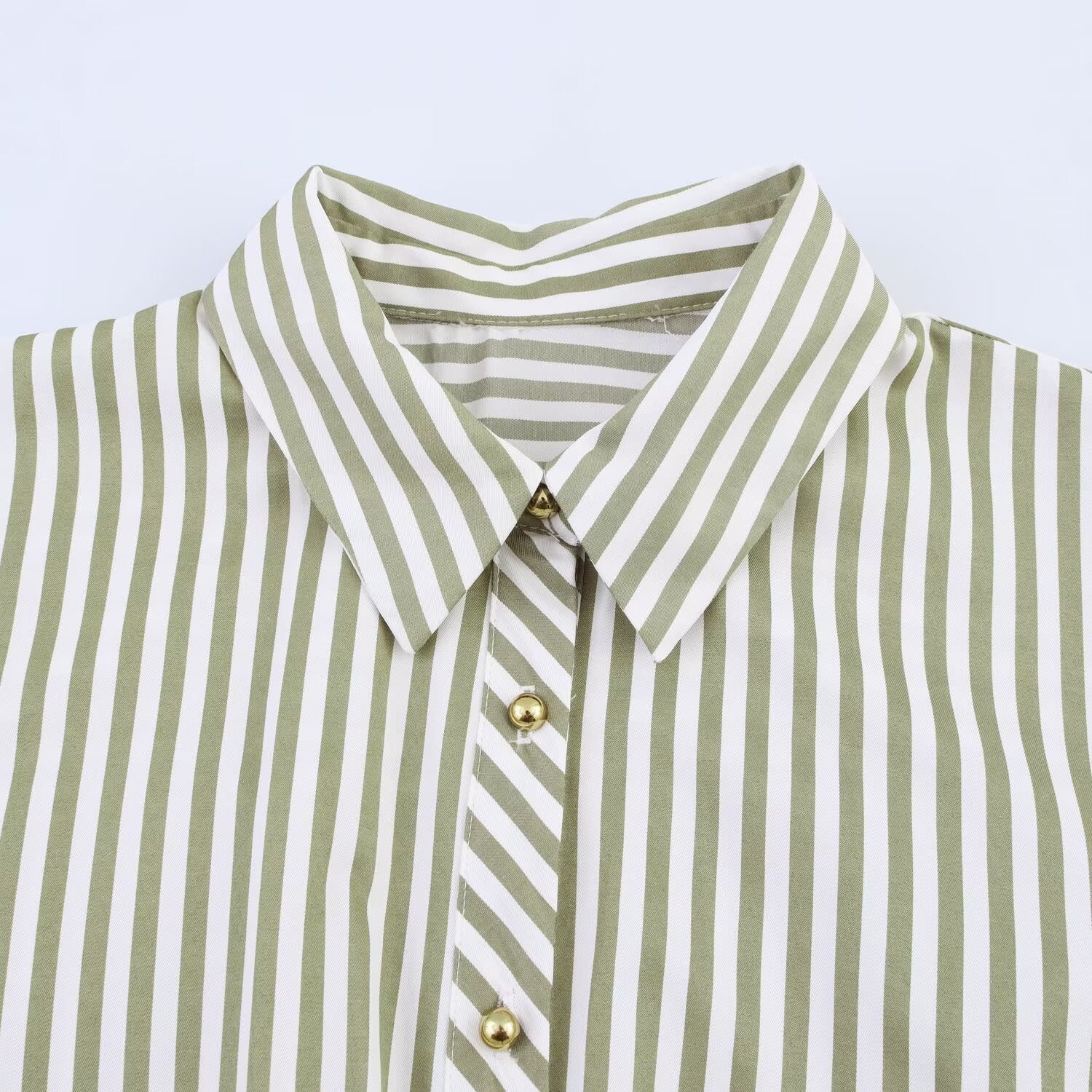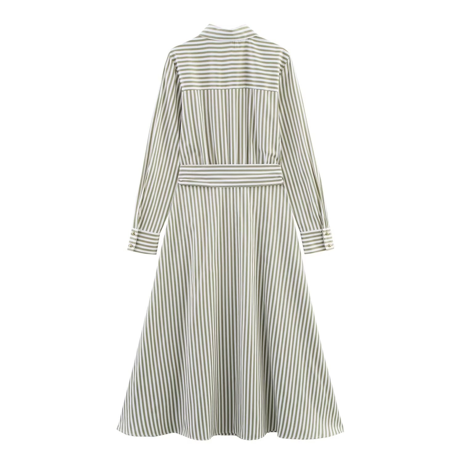 Women's New Fashion With Belt Casual Single breasted Striped Shirt Style Poplin Midi Dress Retro Long sleeved Women's Dress