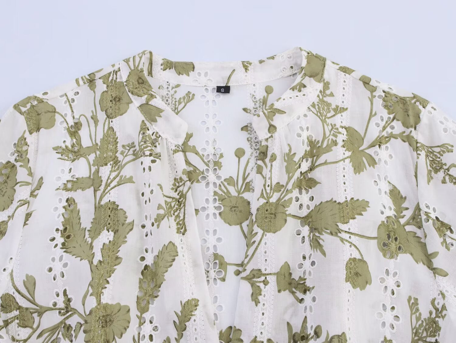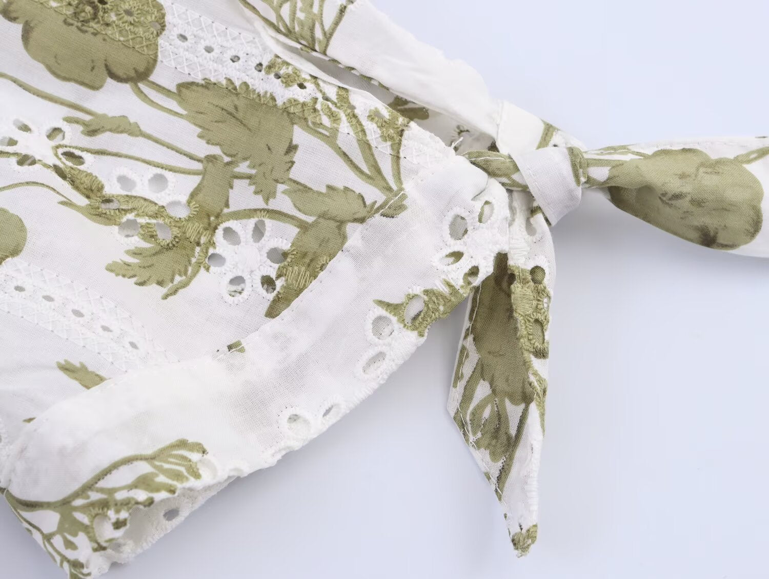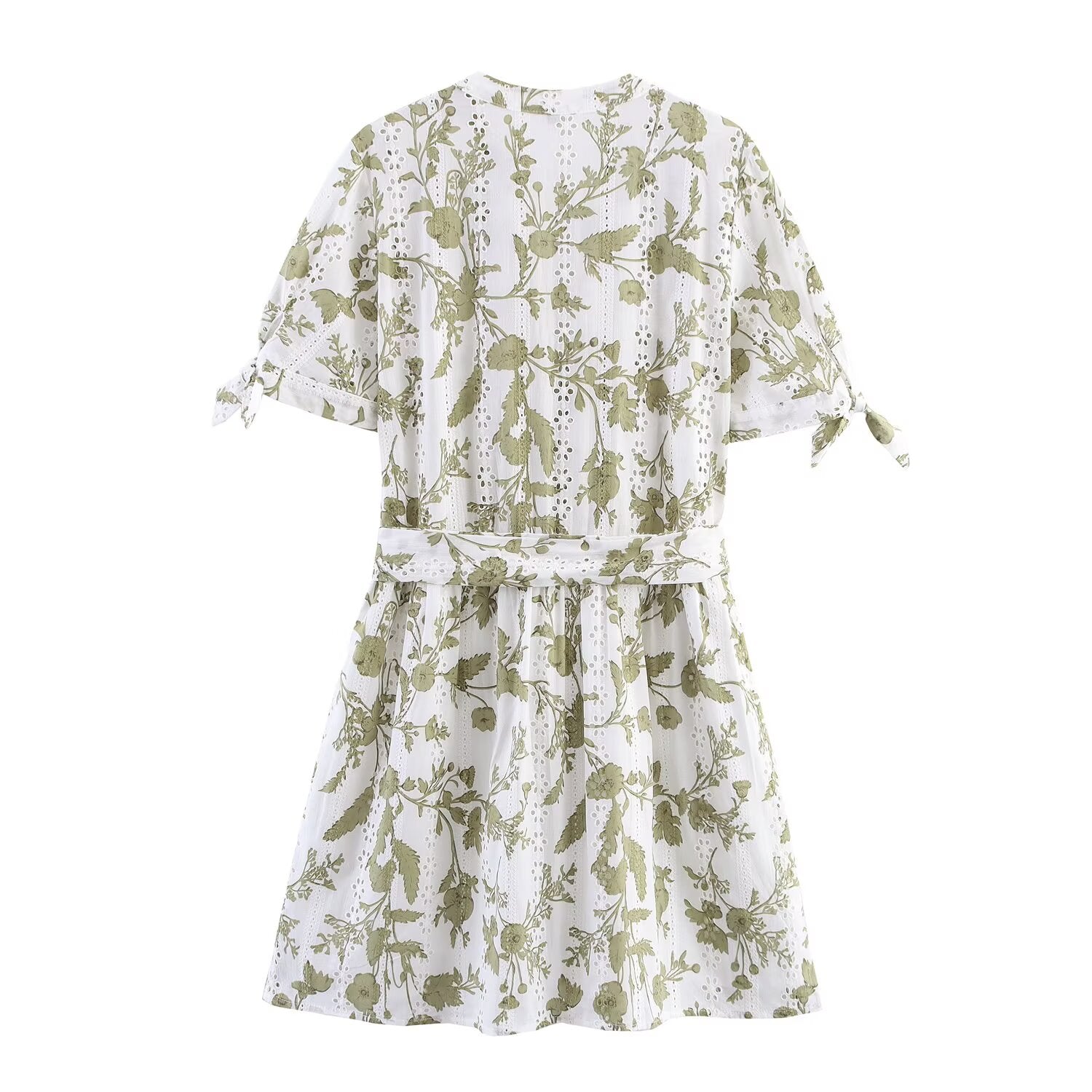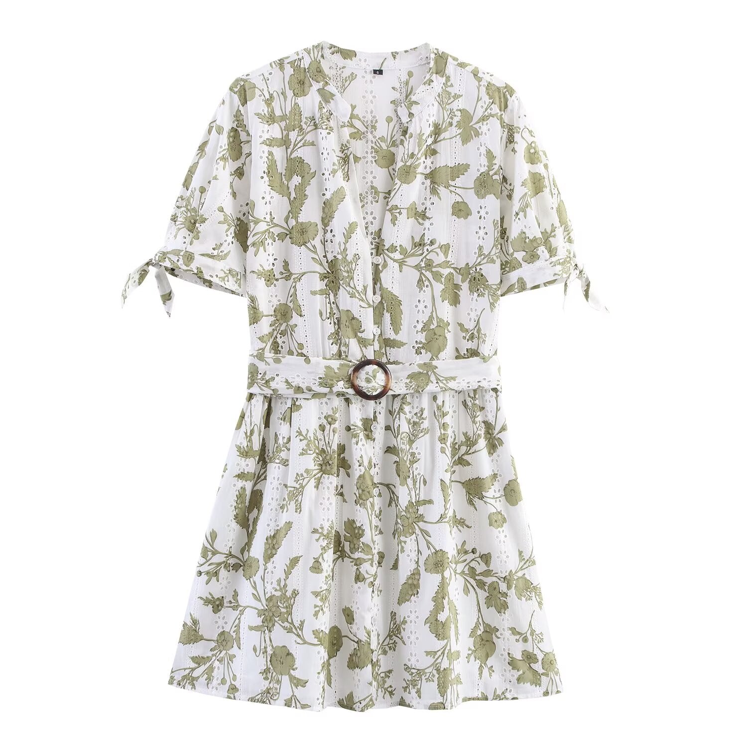 Women's New Fashion With Belt Hollow Embroidery Printed Mini Dress