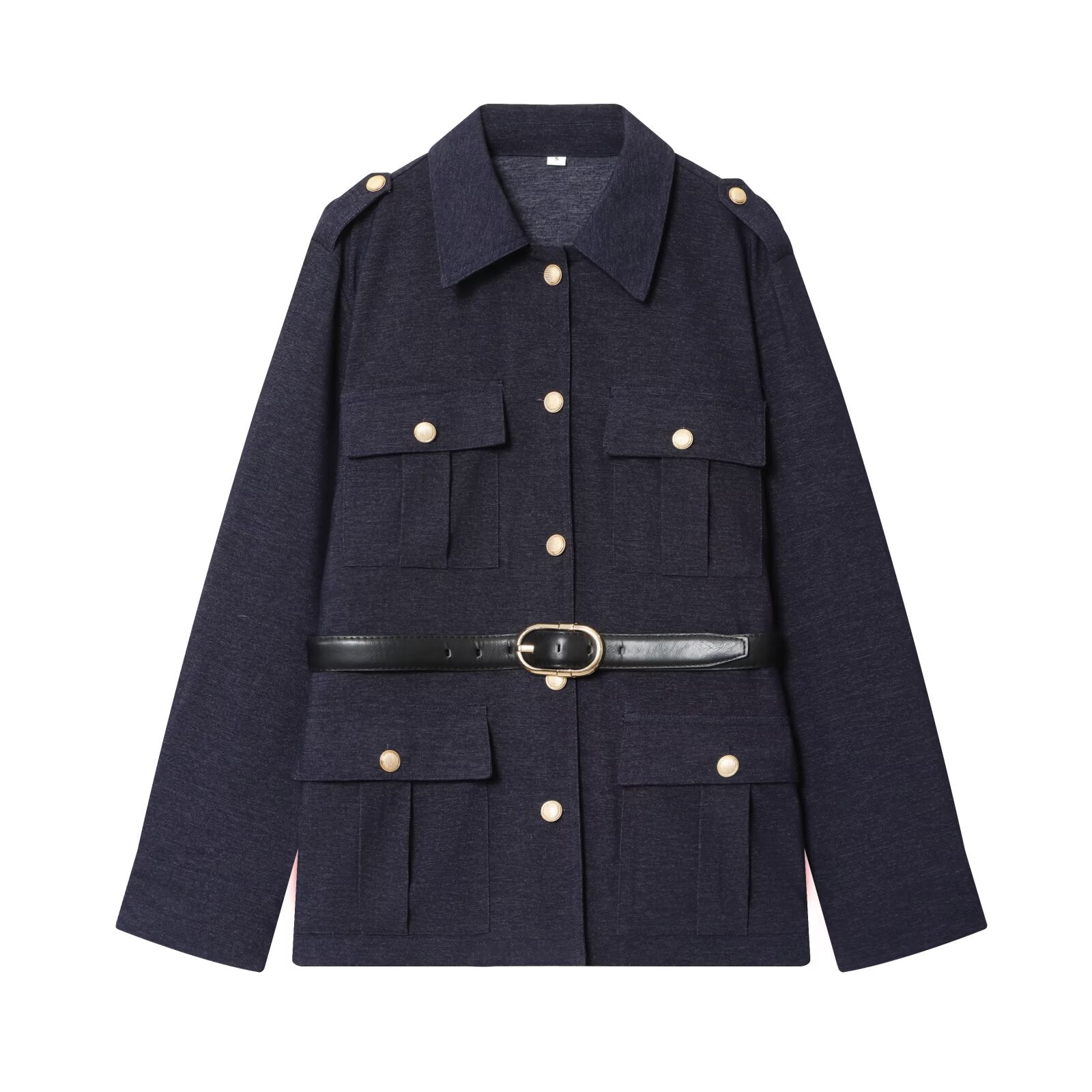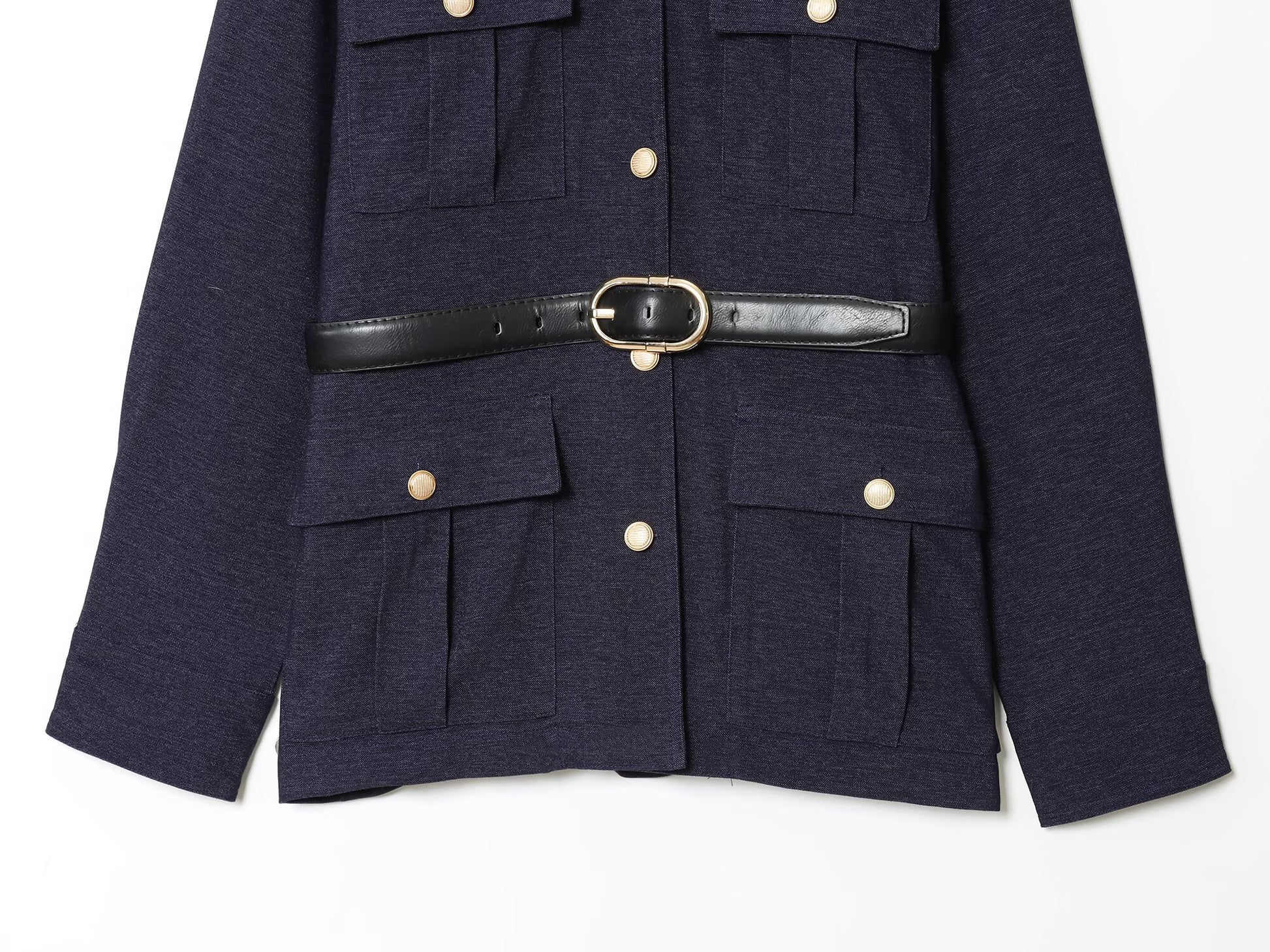 Women's New Fashion With Belt Long Sleeve Lapel Coat+Pants Suit