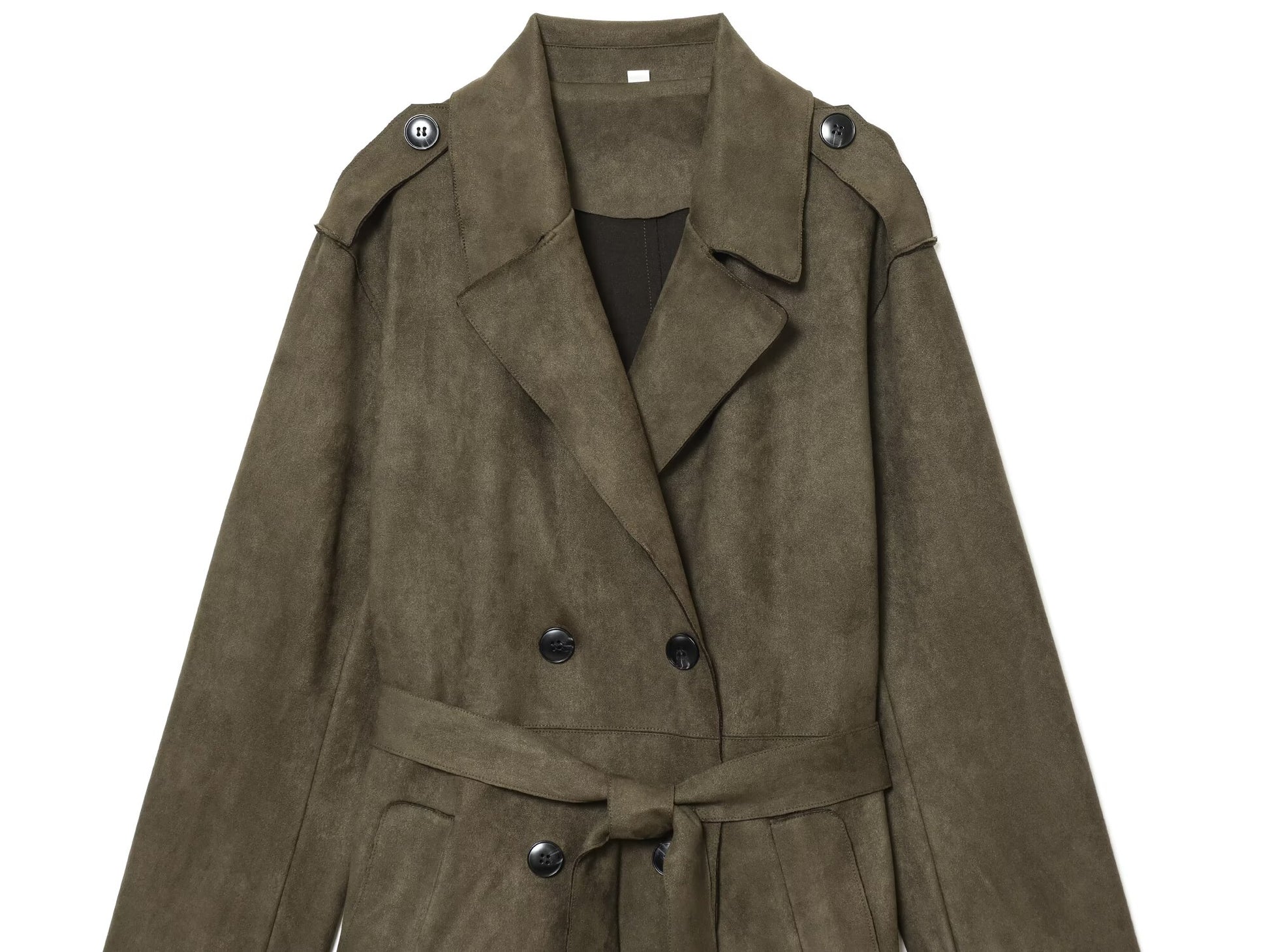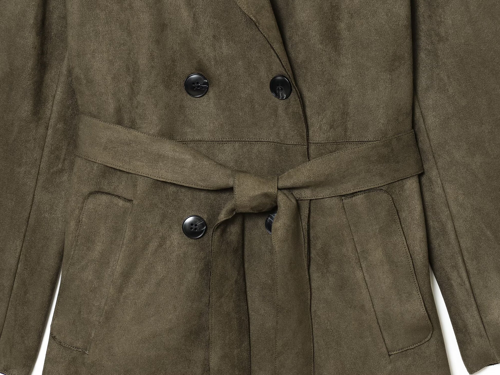 Women's new fashion with Belt long style suede effect windbreaker Coat