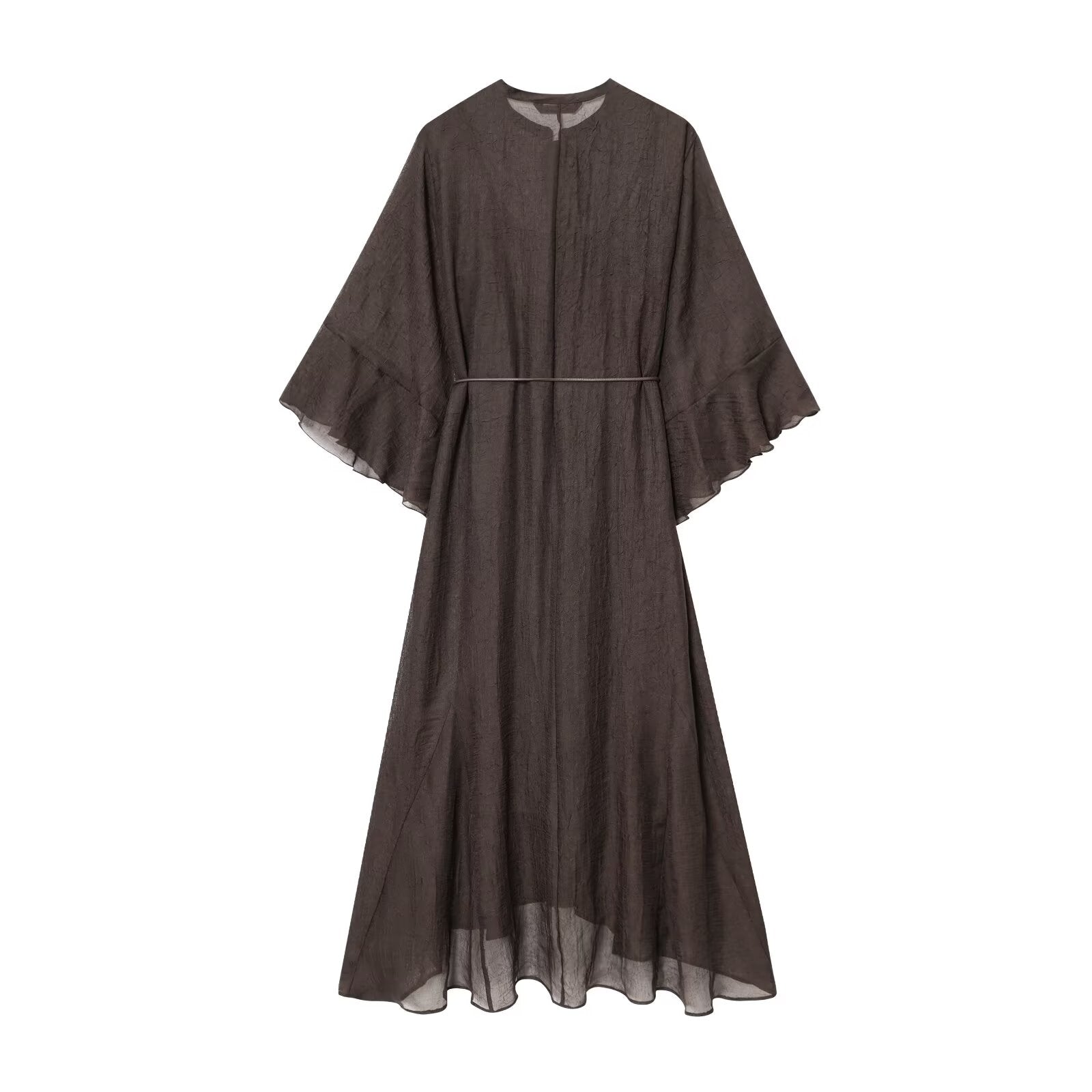 Women's new fashion with Belt loose semi transparent MIDI dress