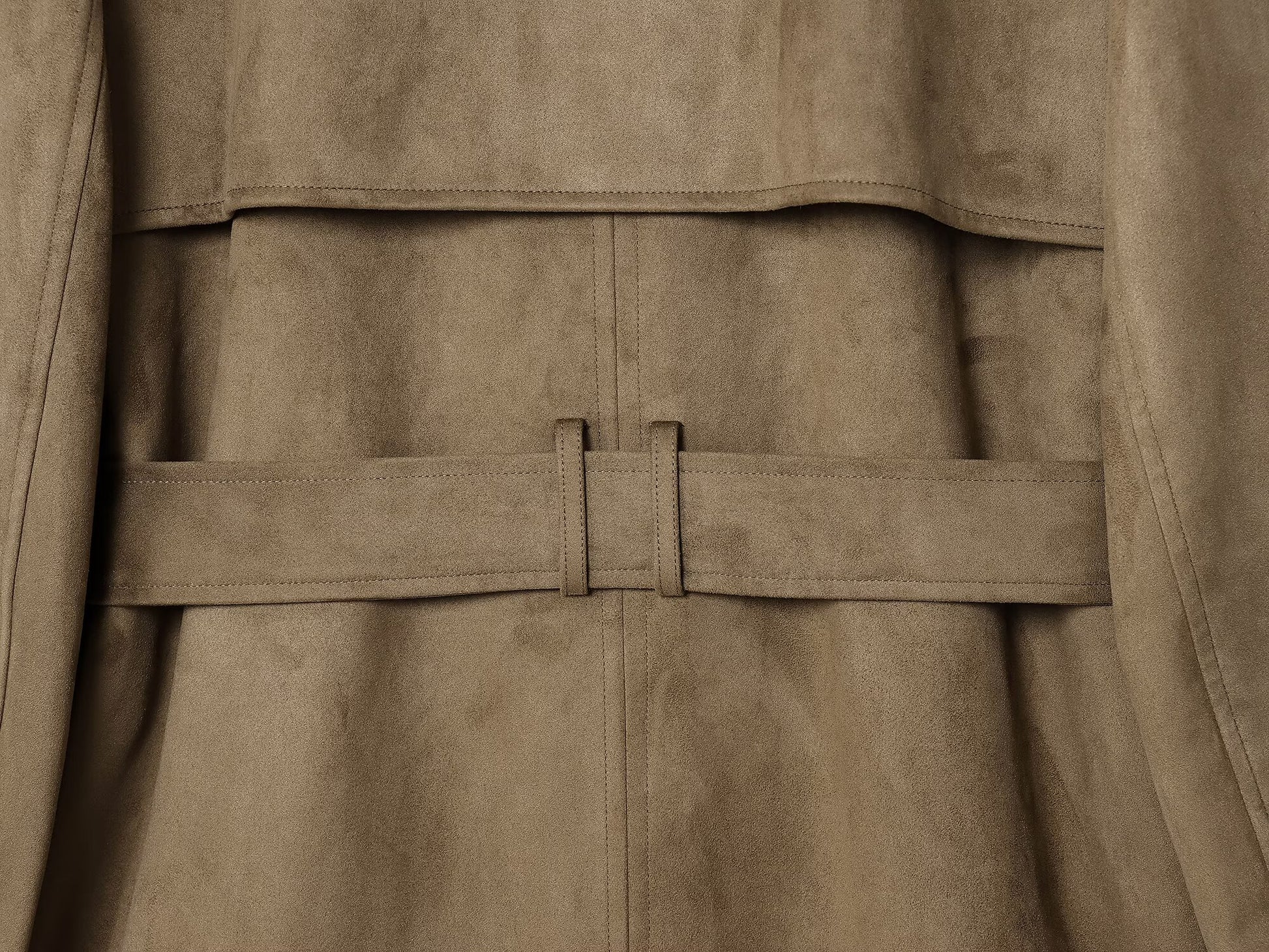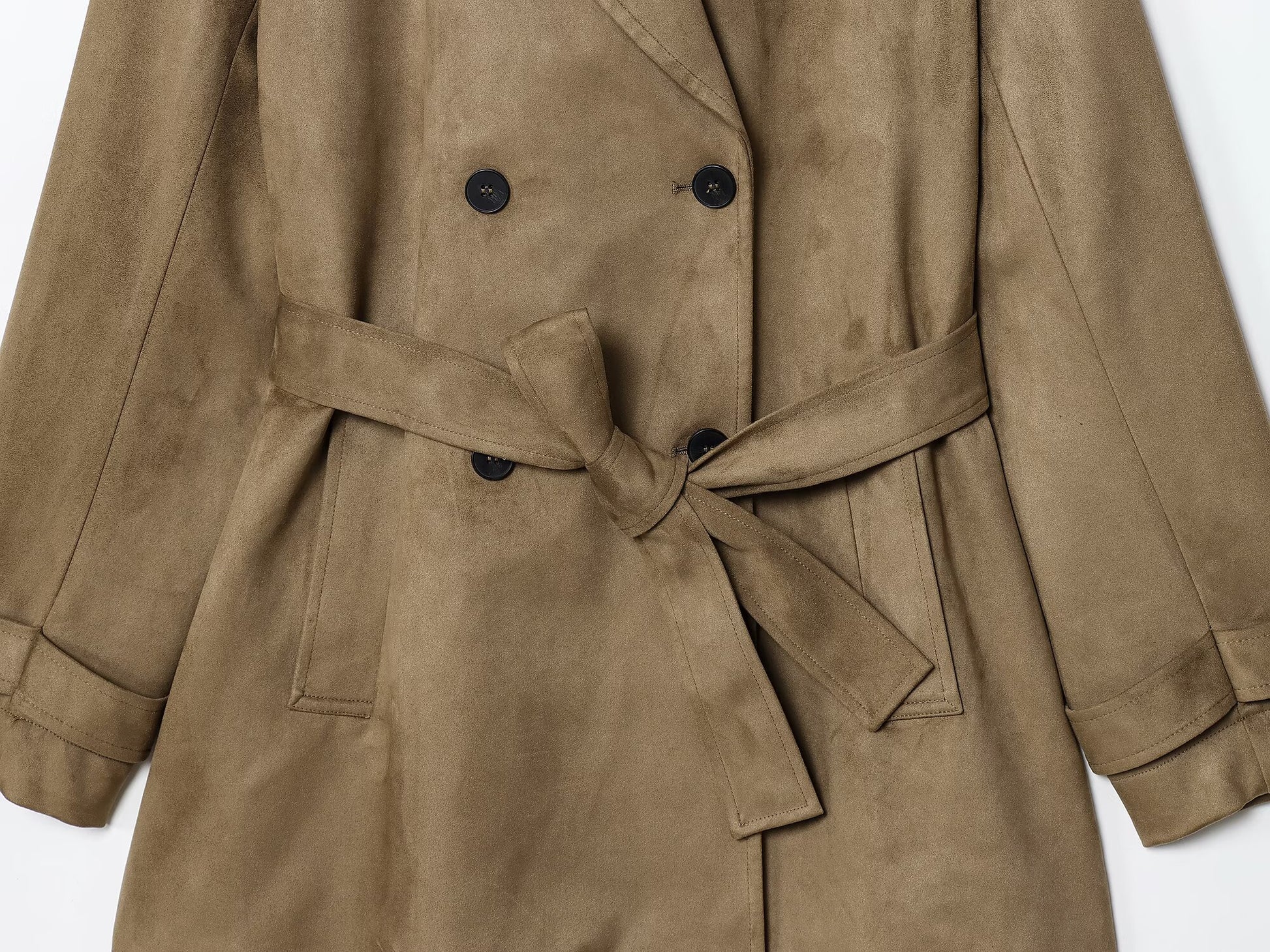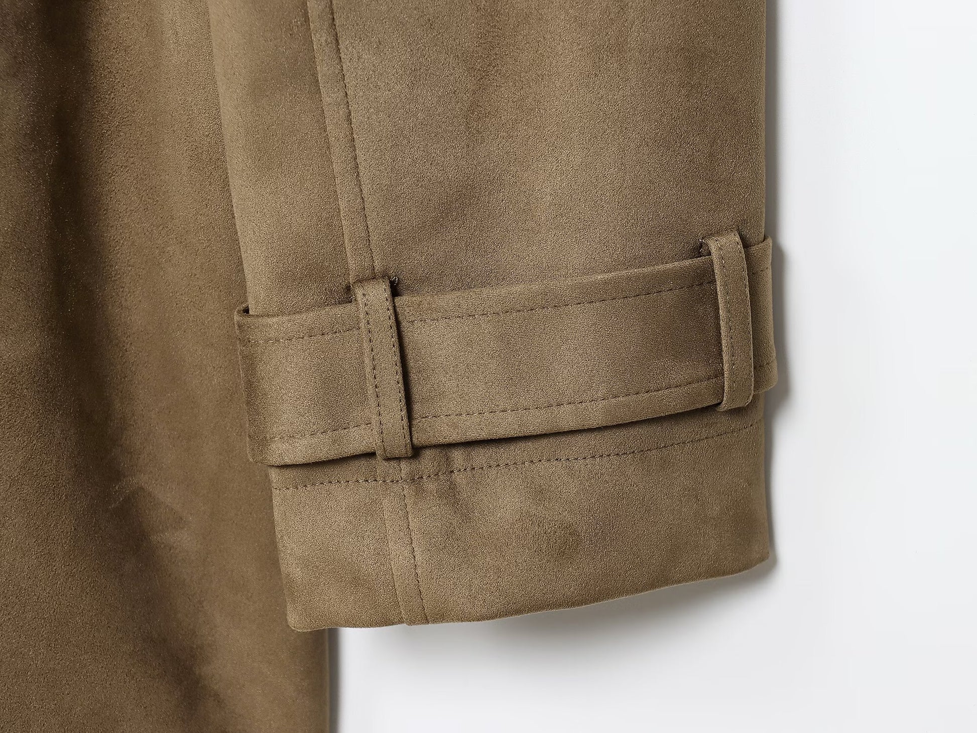 Women's new fashion with Belt loose suede effect windbreaker jacket