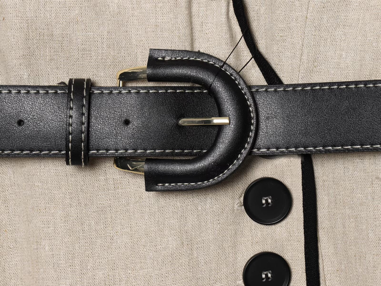 Women's new fashion With Belt Sleeveless Linen Blended V-neck Midi Dress