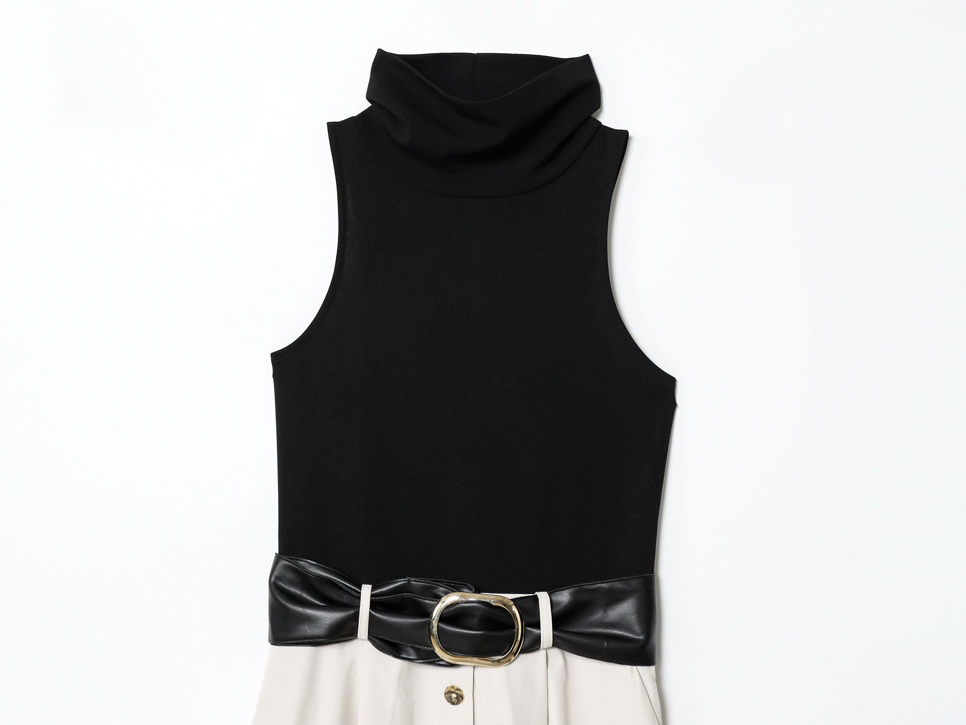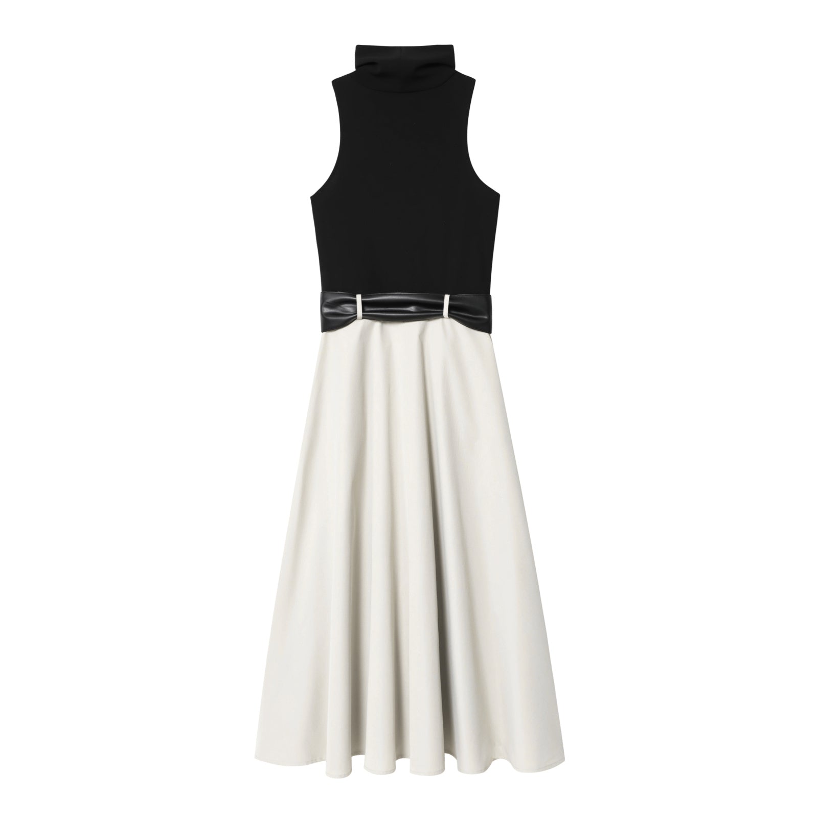 Women's New Fashion With Belt Sleeveless Splicing Midi Dress