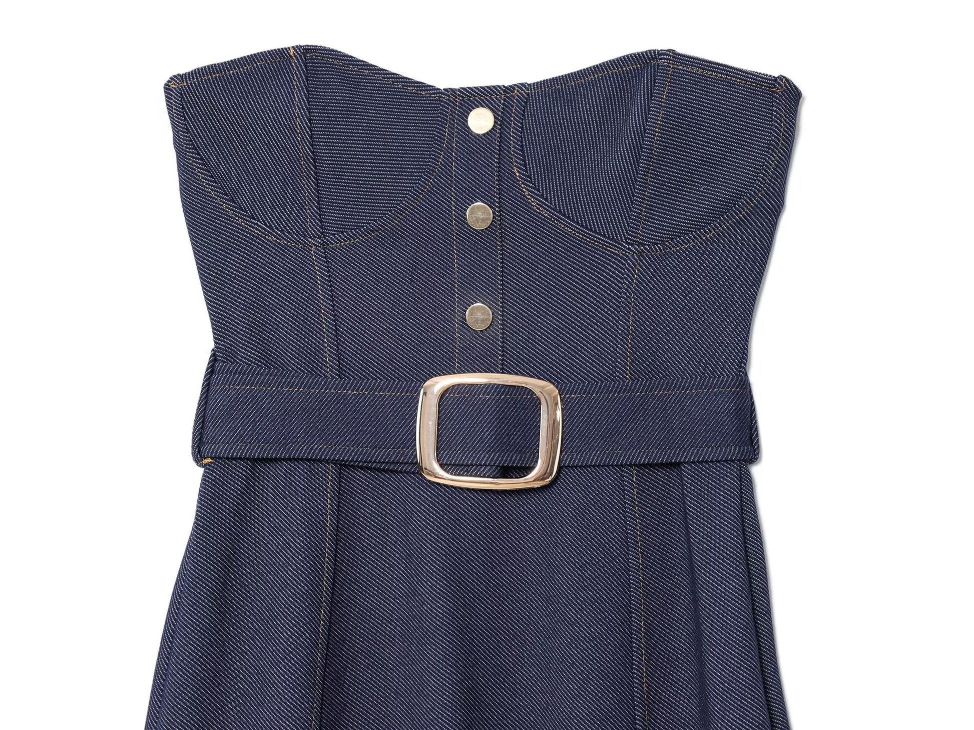 Women's new fashion with Belt sleeveless strapless MIDI dress