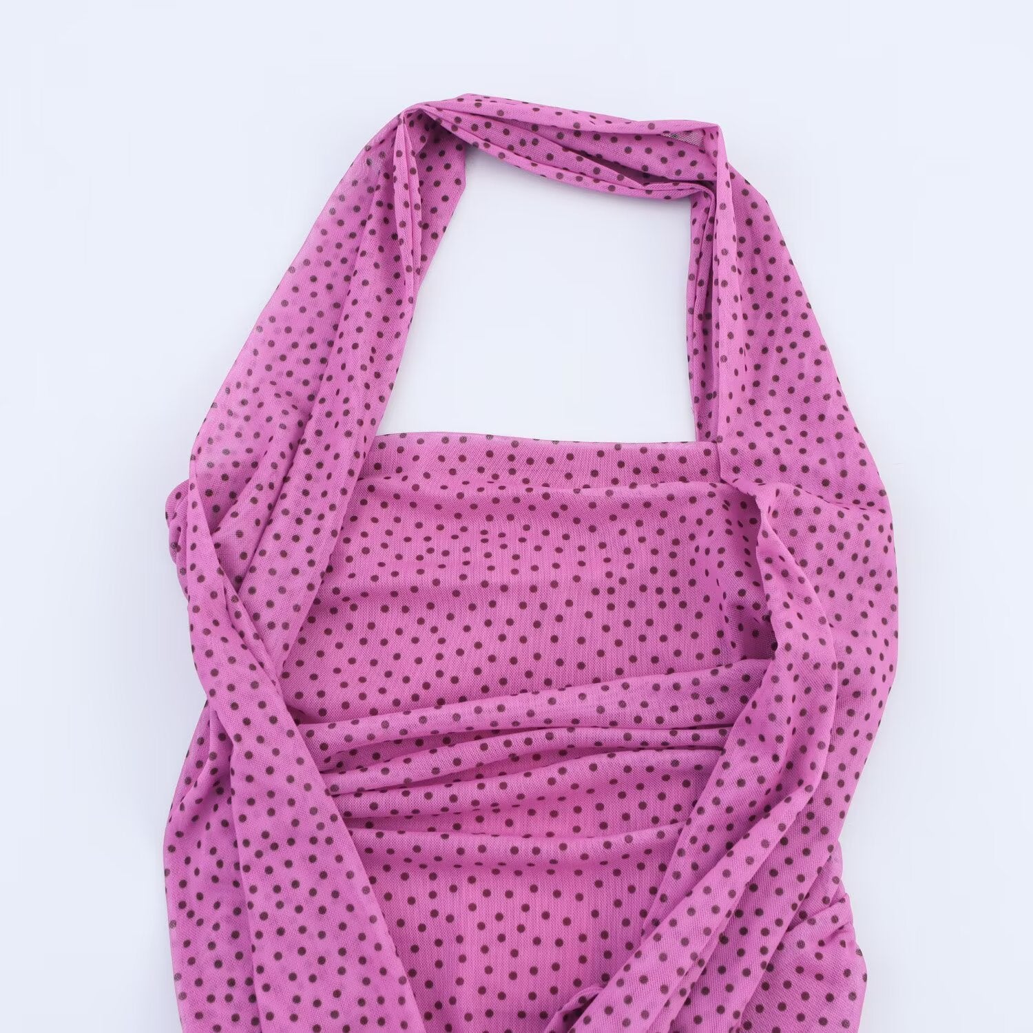 Women's new fashion with scarf polka dot print pleated strapless MIDI dress