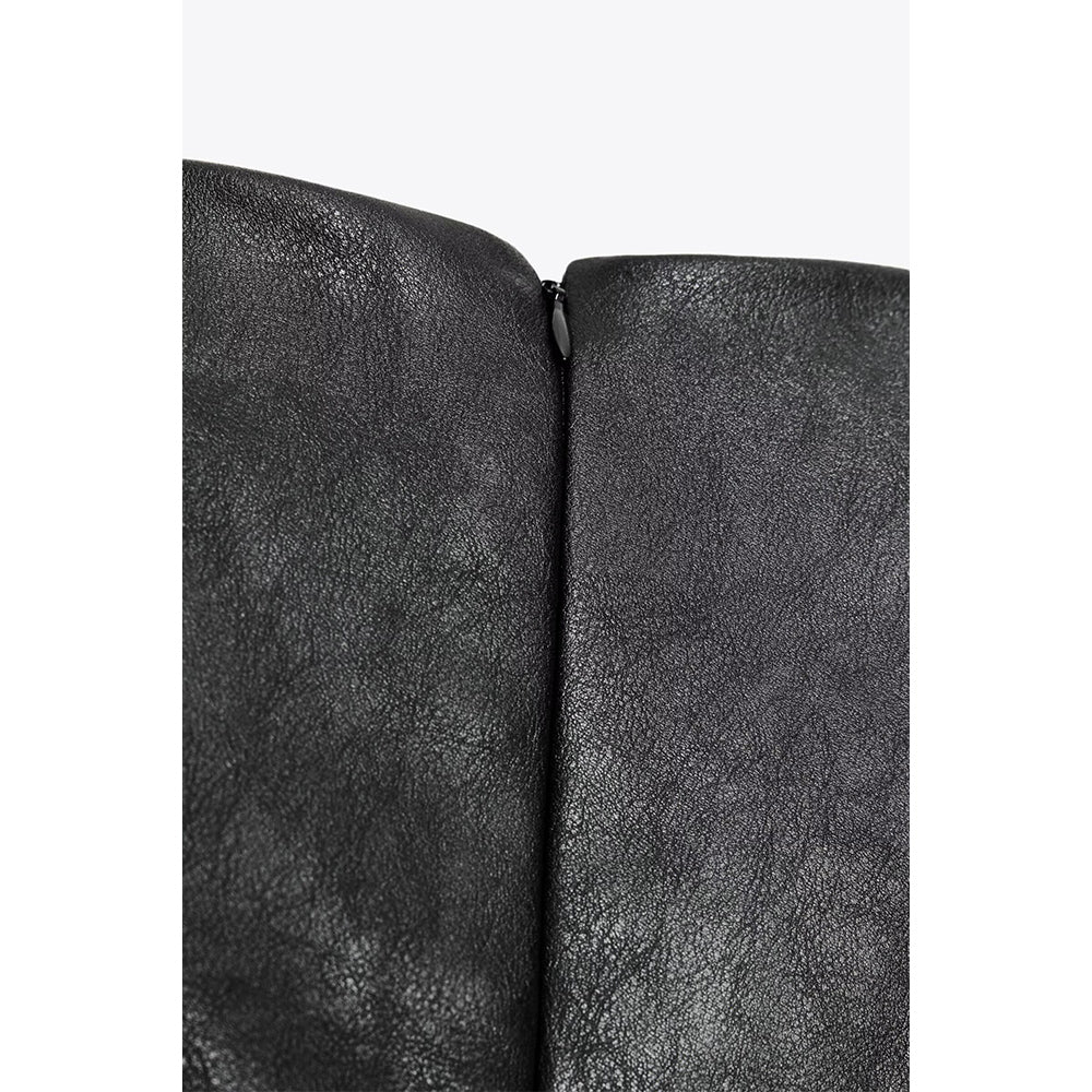 Women's new fashion with shoulder pads black faux leather mini dress