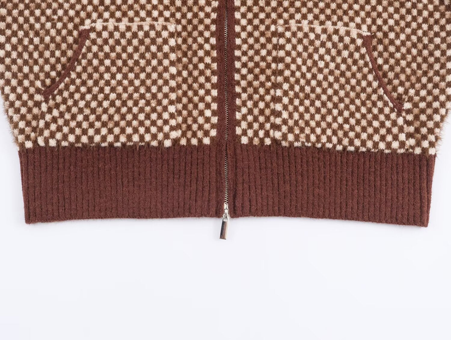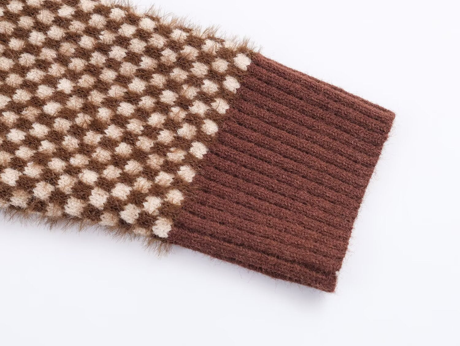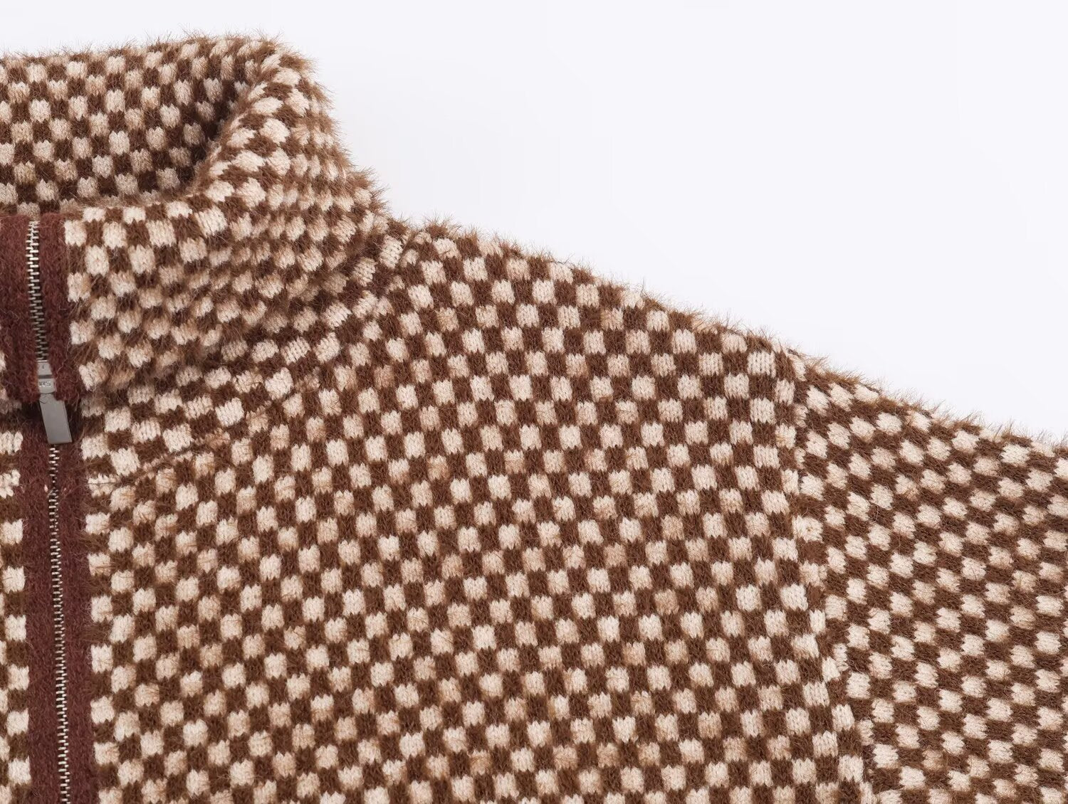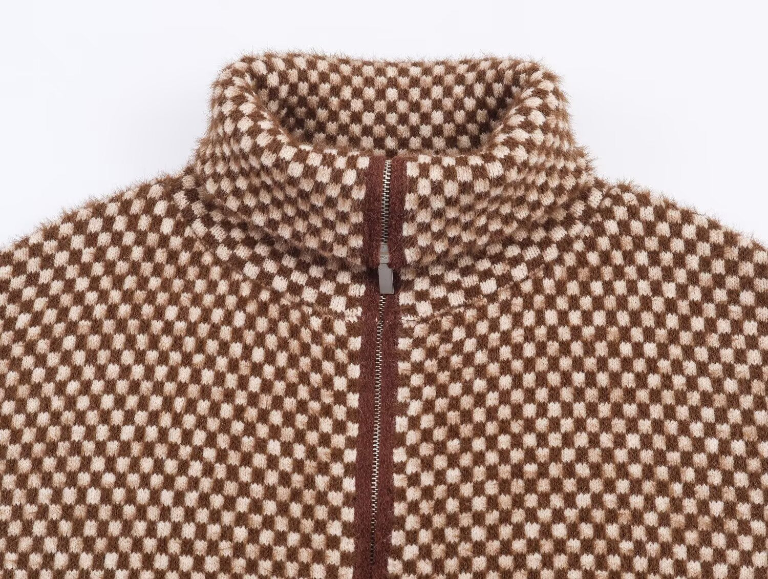Women's new faux fur effect stand collar knitted Coat
