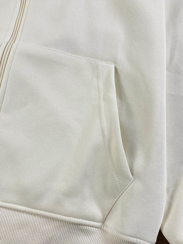 Women's new Joker embroidered sweater hooded pocket design long sleeve zipper coat.