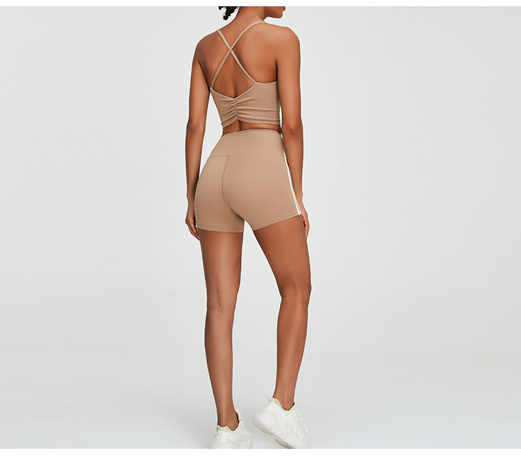 Women's New Suit Sports Bra Cross Vest Yoga Quick-drying Fitness Clothes+high Waist Tight Exercise Hip Yoga Shorts.