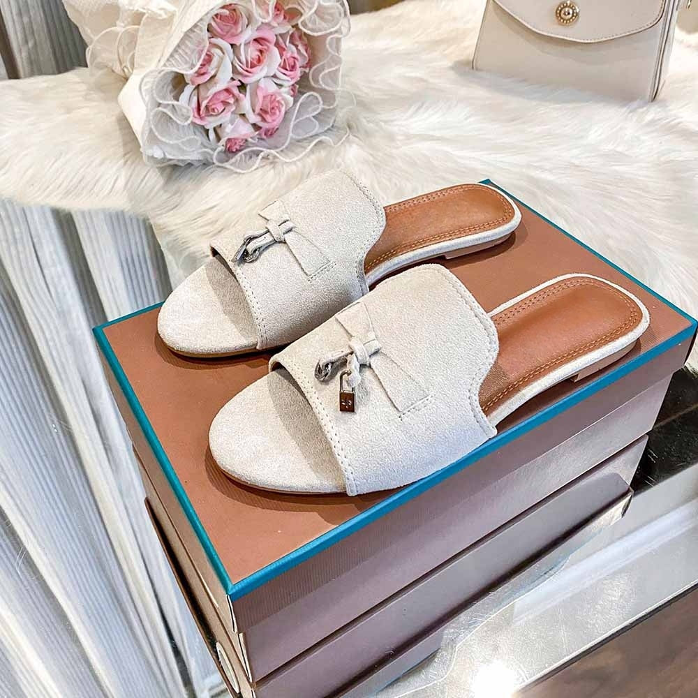 Women's New Temperament Joker Velvet Tassel Pendant Decorated with Thin Slippers and Sandals.
