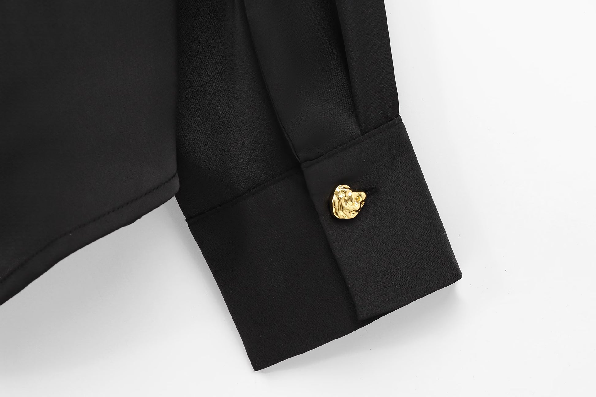 Women's New World Bank Temperament Joker Metal Button Blouses Retro Long Sleeve Button Blouses Chic Tops.