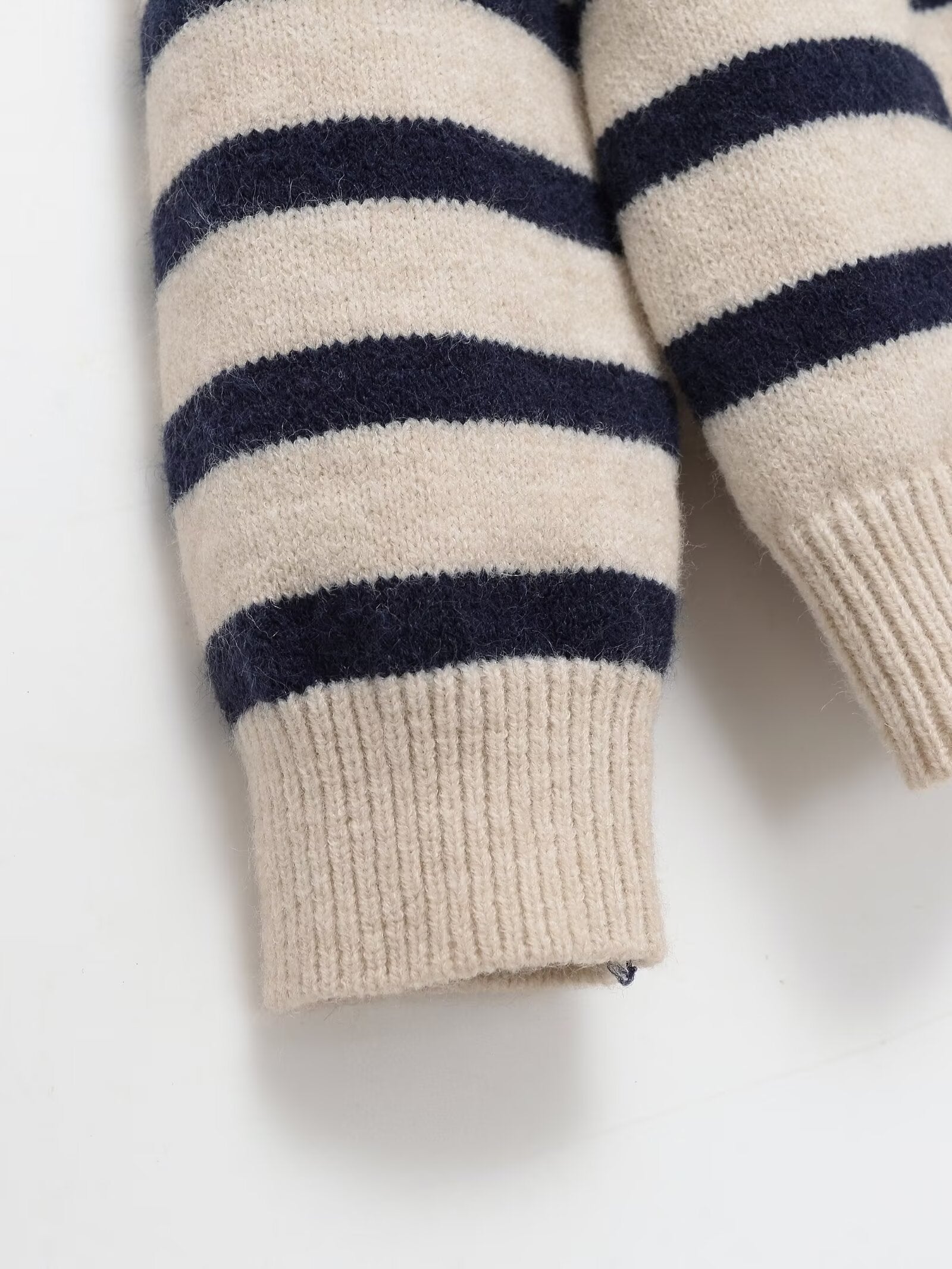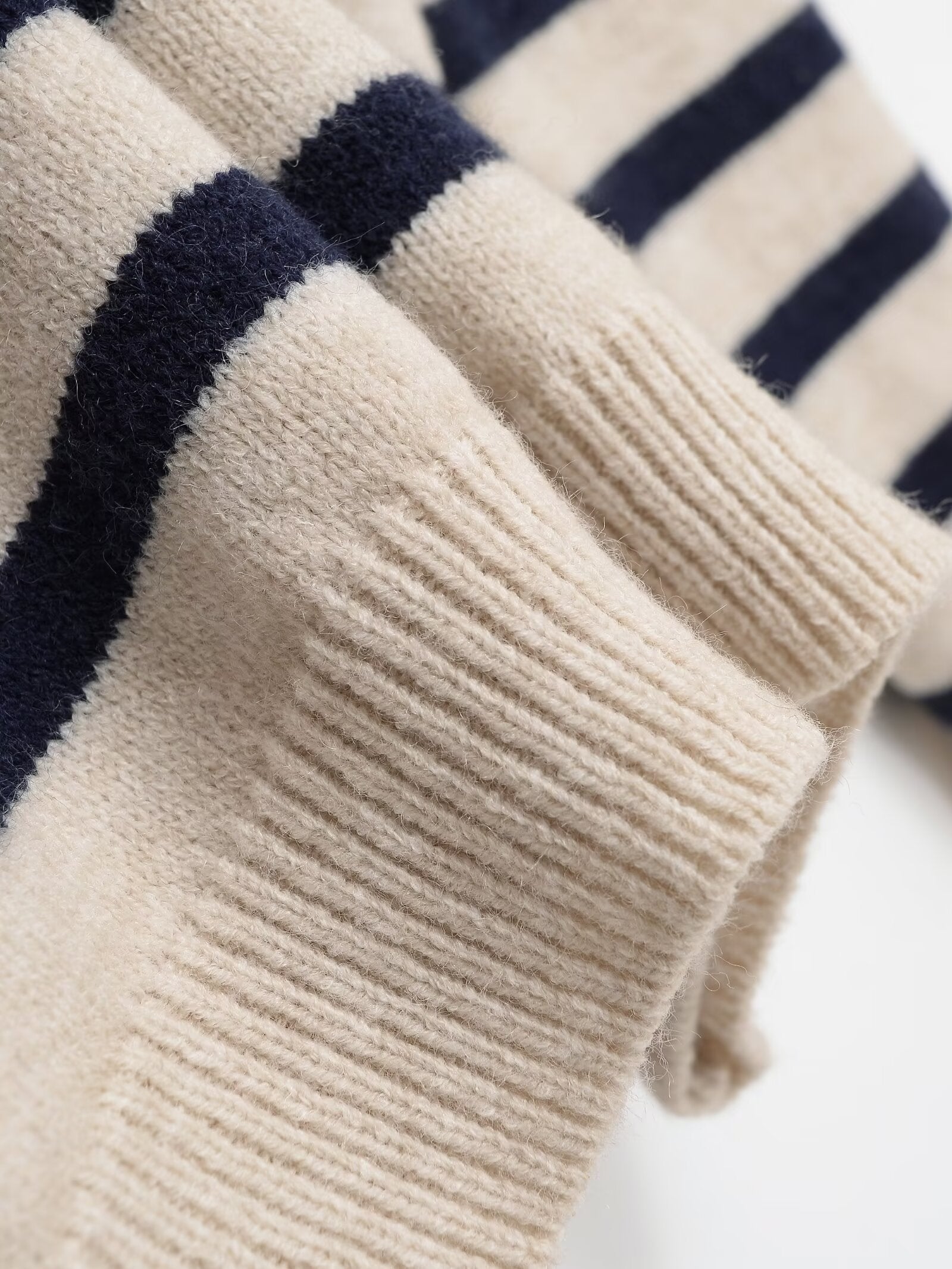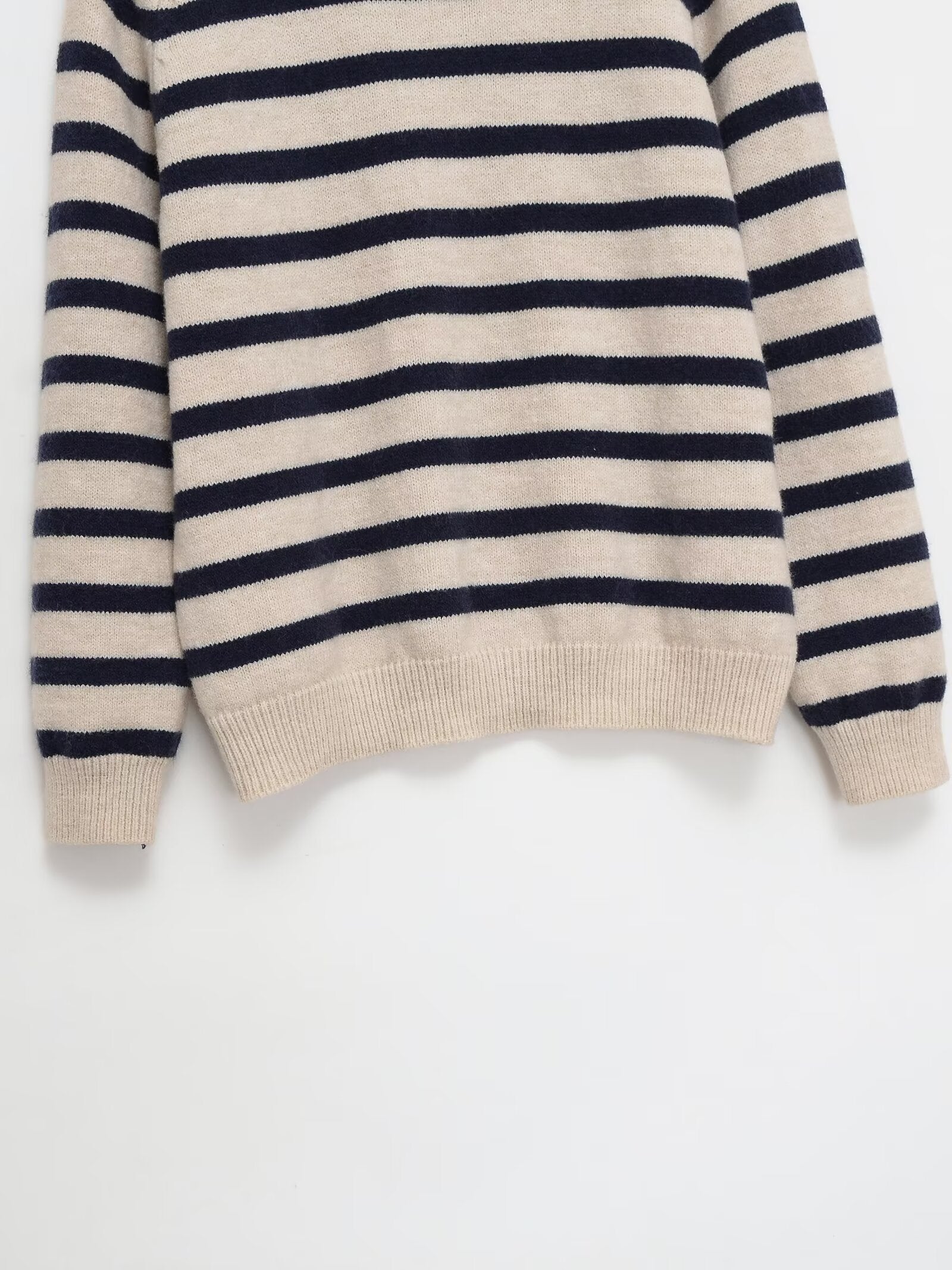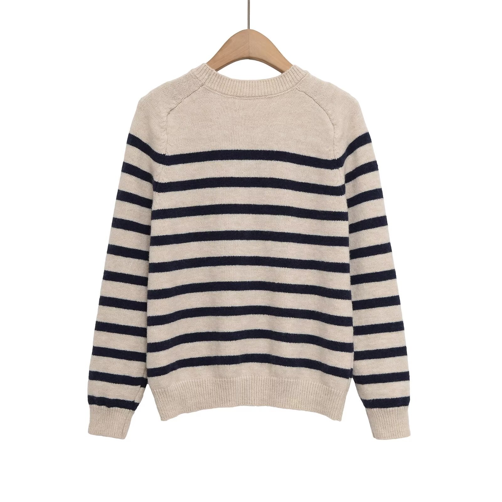 Women's O Neck long sleeved striped knitted sweater